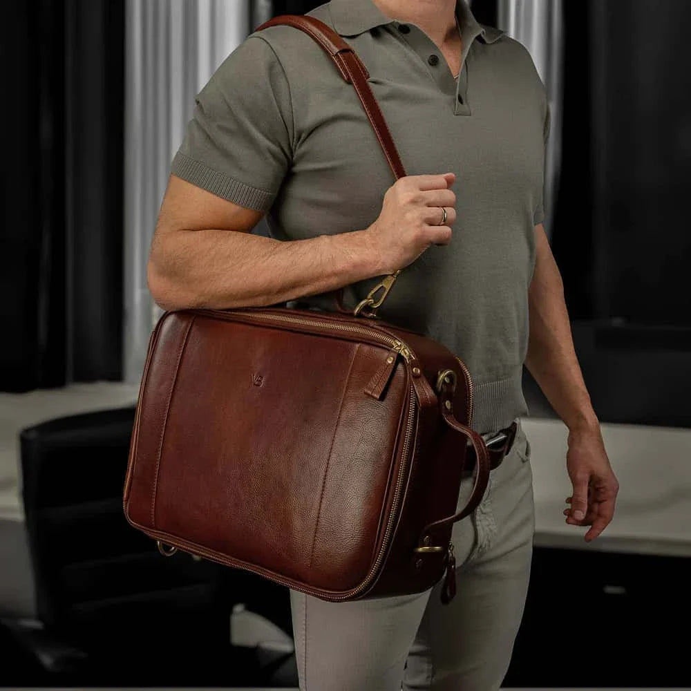 Fabriqué à partir de cuir pur, Voyager est à la fois résistant à l’eau et au soleil, garantissant durabilité et élégance en toutes circonstances. Ses larges compartiments sont parfaitement adaptés pour transporter vos essentiels professionnels, tout en offrant une organisation optimale.