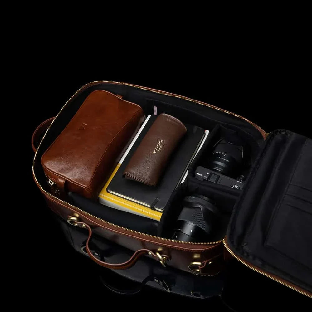 Les bretelles ajustables et rembourrées assurent un confort maximal lors de vos déplacements. Une finition artisanale haut de gamme vient sublimer son design épuré, en faisant bien plus qu’un simple accessoire : un véritable symbole de raffinement.